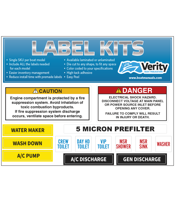 Do you have to maintain dozens of SKUs for your boat labels? Or is your staff tasked with making labels in-house, only to have them fall off due to poor adhesion? We can make a custom label kits for each of your models, simplifying inventory and reducing the number of SKUs to keep track of.